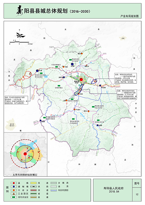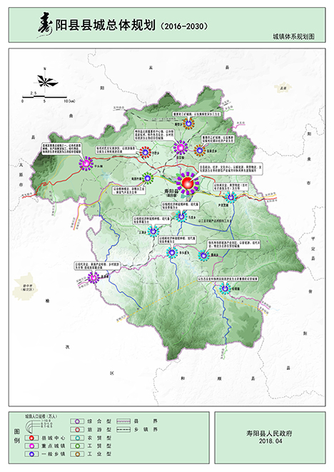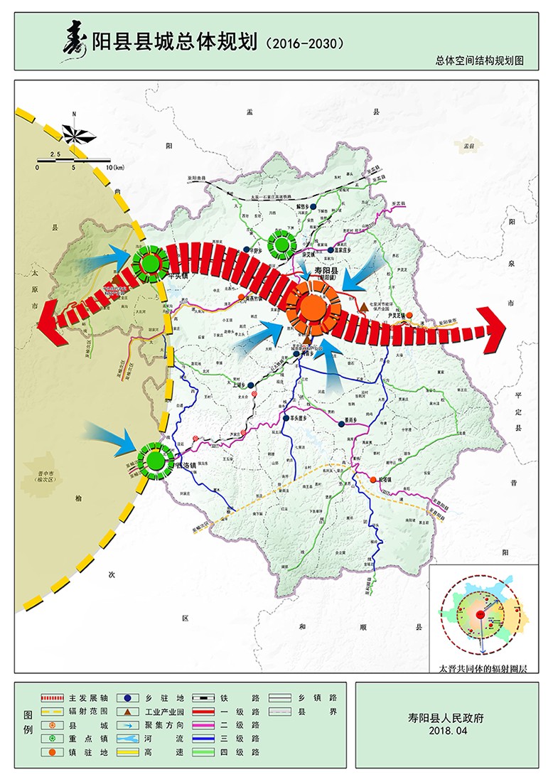 一心:县城,是县域人口集聚与城镇建设的重心,寿阳县域经济社会发展的增长极,辐射和引领整个寿阳县的乡镇发展。
