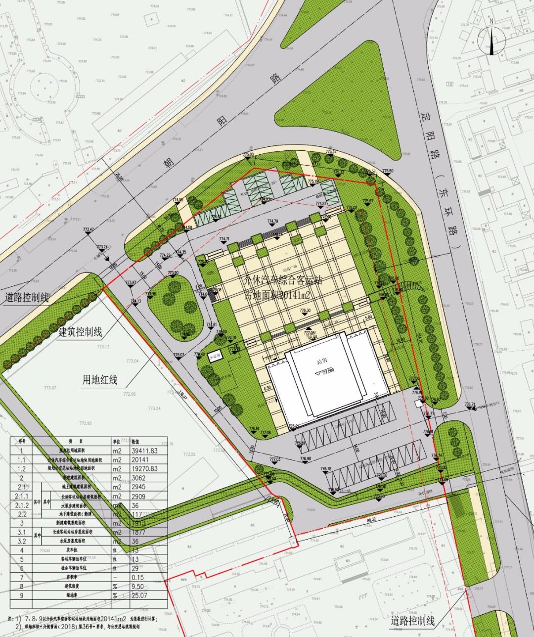 建设地点位于朝阳路与定阳路(东环路)交汇处西南角,规划用地面积为44799.29㎡,建筑面积为2925.07㎡。建设内容涵盖客运站、站前广场、社会车辆停车场、客运车辆停车场以及公交充电设施等??驮苏旧柚檬燮贝筇?、候车大厅、母婴候车室、托运寄存处、问讯处、广播室、调度室、医疗救护室、值班站长室、站务员室、联运办公室和司机休息室等。